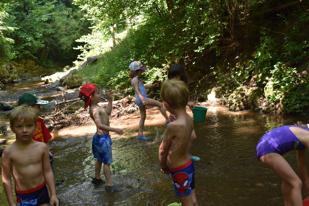 - Der Waldtag ist fester Bestandteil der Wochenplanung. Wichtig dabei ist die schöpferische Auseinandersetzung mit der Natur. Der Bachspielplatz ermöglicht den Kindern außerdem, als ForscherInnen aktiv mit den verschiedenen Elementen in Berührung zu kommen.