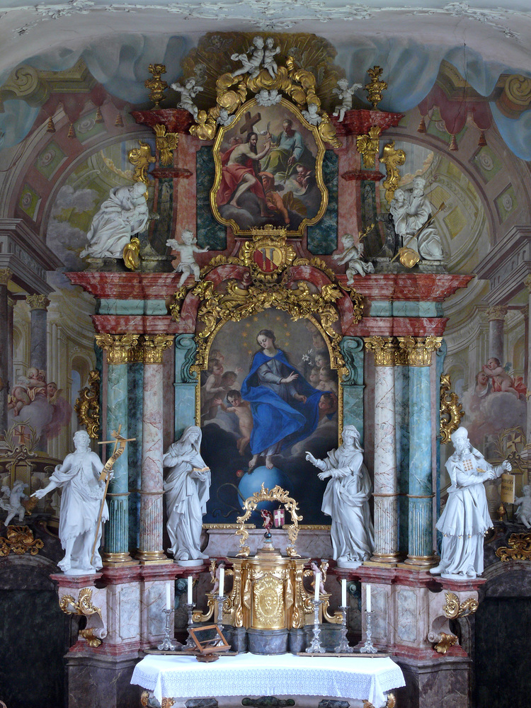Zur vorzüglichen Ausstattung der Kirche gehören nicht nur der figürlich reich verzierte Hochaltar, sondern auch die Seitenaltäre mit zwei frühchristlichen Reliquien und einer Reliquie des seligen Kaisers Karl.