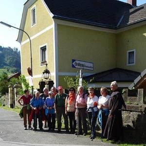 Die heurige Fußwallfahrt nach Pernegg stand unter dem Motto "Von Maria - zu Maria". Zum 3. Mal ausgehend vom 2016 errichteten Marien-Bildstock beim Murkraftwerk in Peugen begleiteten 11 Pilger Pater Simon zu Fuß zur Wallfahrt über den Murradweg 2 in Richtung Norden. Nach einer kurzen Andacht beim neuen Bildstock um 6 Uhr früh folgten bei herrlichem Frühlingswetter weitere Gebete und Marienlieder bei der Feldgrill-Zuhube und der Kapelle in Mixnitz. Das Ziel, die Marien-Wallfahrtskirche in Pernegg, auch liebevoll "Frauenkirche" bzw. Wallfahrtskirche Klein-Mariazell genannt, wurde knapp vor 10 Uhr erreicht. Mit Glockengeläute und den vor der Kirche wartenden Gläubigen aus Frohnleiten wurden die tapferen Pilger betend zur Gnadenmutter von Pernegg geleitet. Pater Simon zelebrierte dann dort die Wallfahrermesse. Die Heimreise erfolgte hernach mit Privat-PKWs.