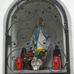 An der Hauseinfahrt zum Anwesen der Familie Maria und Vinzenz Waidacher vlg. Kaiser im Tal (im Volksmund „Koasa“) in Schrems 47 steht unter Obstbäumen und nahe der bekannten Obstpresse ein schöner Bildstock, der 1982 von P. Simon feierlich eingeweiht wurde.