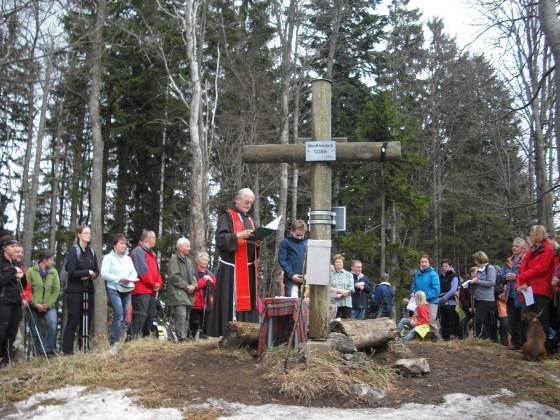 An der stimmungsvollen Einweihung des schönen Gipfelkreuzes durch Pfarrer P. Simon Orec nahmen am 20. April 2013 – fast genau 12 Jahre nach der Errichtung – bei schneebedecktem Boden und idealen Wanderwetter rund 150 Gläubige, darunter viele Kinder und Jugendliche, aus den angrenzenden Gemeinden Semriach, Schrems und Frohnleiten, teil. Am Beginn wurde wurde das bekannte Volksmissionslied „Heilges Kreuz, sei hoch verehret...“ gesungen und nach der Segnung des Gipfelkreuzes wurde ein Dankgottesdienst unter großer Anteilnahme gefeiert.