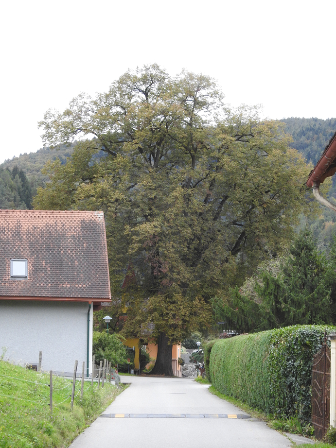 Die mächtige Linde vor der Kapelle ist so alt wie diese. Ihr Wurzelwerk gefährdet immer wieder die Kapelle und hat daher auch die Renovierung mit Eingriffen ins Wurzelwerk von 1984 notwendig gemacht. Auch der Baum hat den Eingriff gut überstanden. Dennoch ist die Gefahr nicht dauerhaft gebannt.