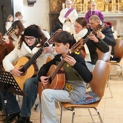 Mit viel Gefühl stimmten die jungen Musikerinnen und Musiker mit ihren Gitarren in die Adventzeit ein und bereicherten mit ihren Stücken die heilige Messe, die Vikar Norbert Glaser, unterstützt von Diakon Michi Zepf, zelebrierte.