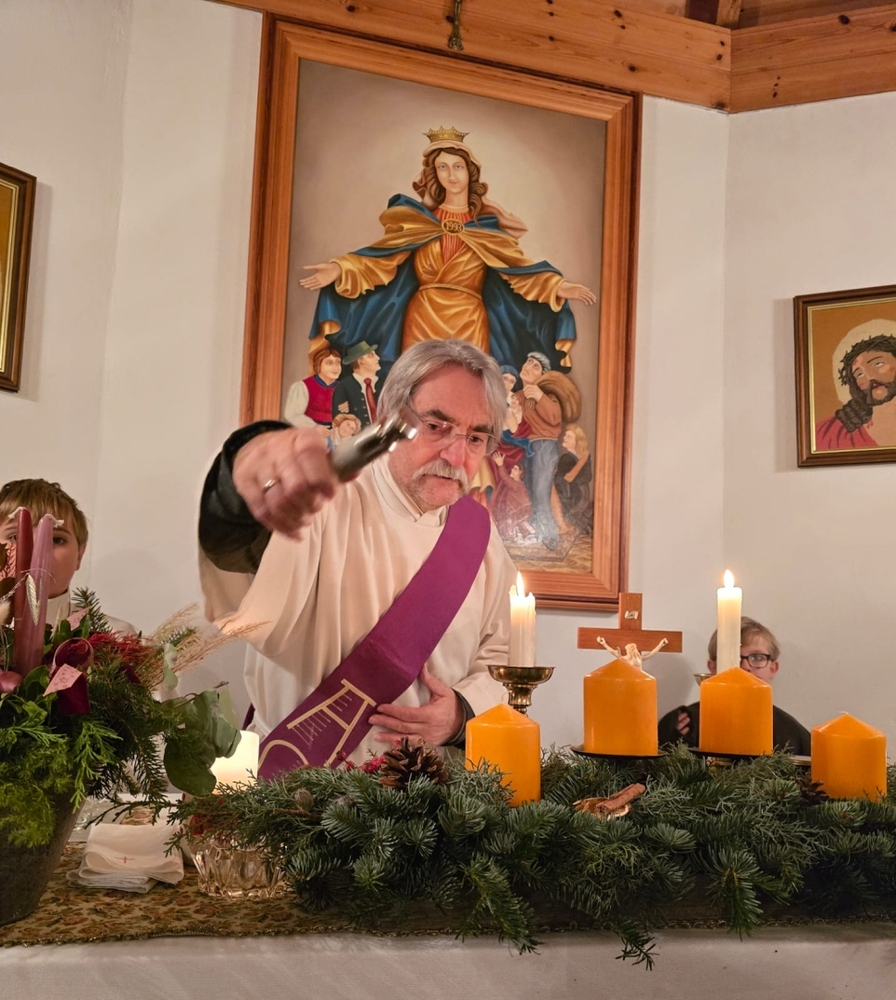 Diakon Michi Zepf segnete im Rahmen von Wort-Gottes-Feiern um 18 Uhr in der Pfarrkirche und um 19 Uhr in der Kaiserwald-Kapelle die herbeigebrachten Adventkränze.