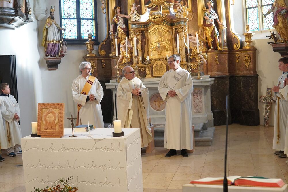 Der neu geweihte Diakon Johannes Chum feierte zusammen mit Vikar Norbert Glaser und Diakon Michi Zepf seine „Premiere“ als Diakon in seiner Pfarre, in der er schon seit gut 30 Jahren beheimatet ist.