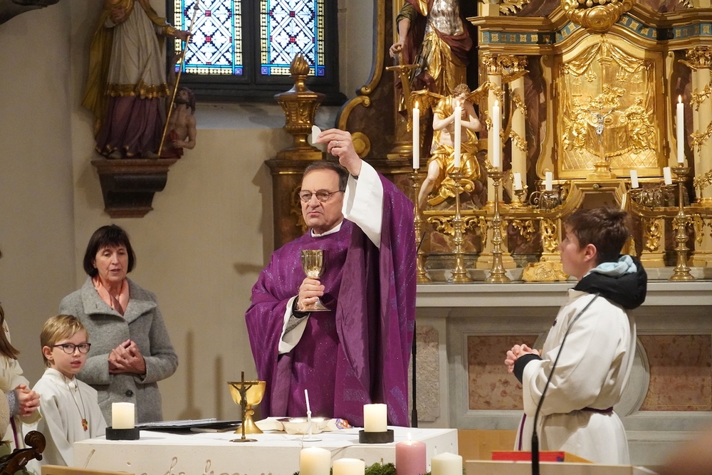 „So wie man eine Violine vor dem Spielen stimmen muss, dass sie gut klingt, so sollten auch wir uns auf Weihnachten gut einstimmen.“ Diesen Vergleich zog Vikar Gerhard Hatzmann in seiner Predigt. Es geht darum, leise zu werden und die feinen Töne wahrzunehmen, sodass die Freude aufs „Christkind“ im Herzen erklingen kann.
