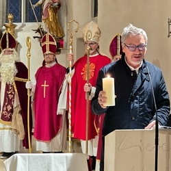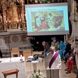 Gedanklich führte uns Vikar Norbert auf die Spur, was der Vers „Seid also wachsam!“ aus dem Evangelium (Mt 24, 42) für uns heute heißen kann - und wie die Vision des Jesaja, dass Schwerter zu Pflugscharen und Lanzen zu Winzermessern umgeschmiedet werden (Jes 2, 4), in unserer Welt ein Stück weit Wirklichkeit werden könnte. Es kann nur gelingen, wenn „Menschen ihr Lebensnavi in Jesus verankern“, so Vikar N. Glaser in seiner Predigt.