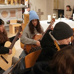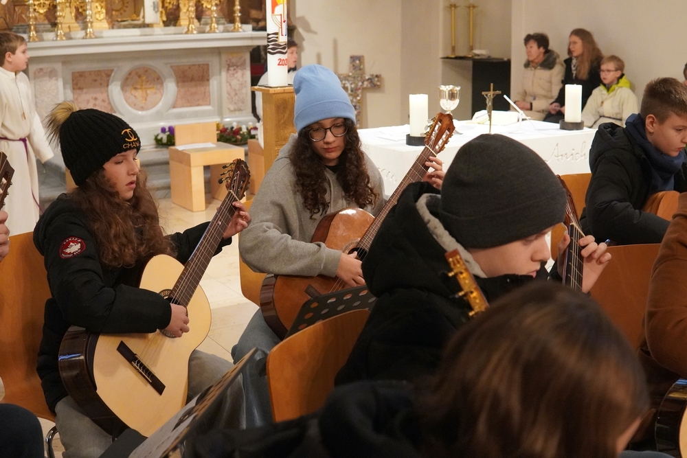 Das Gitarrenensemble der Musikschule Premstätten geleitete uns sehr stimmungsvoll durch den Gottesdienst am 1. Adventsonntag, den Vikar Norbert Glaser und Diakon Michi Zepf mit uns feierten.