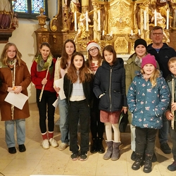 Eine Sternsingergruppe überbrachte die Botschaft, die schon Tage zuvor in den Häusern verkündet worden war: Gott braucht uns, braucht dich und mich, um der Gerechtigkeit auf Erden eine Chance zu geben. Er braucht unsere Solidarität mit den Ärmsten!
