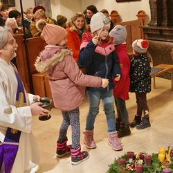 Erstmals durften in der Kirche auch die anwesenden Kinder die Adventkränze segnen, denn … „Segnen darf jede/r, dazu muss man nicht Priester oder Diakon sein!“ So lud Diakon Michi Zepf die Kinder dazu ein - und es machte ihnen sichtlich Freude!