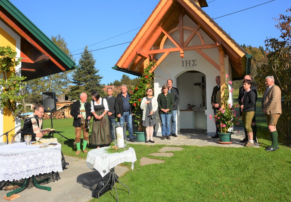 Bei strahlendem Sonnenschein wurde am 26. Oktober 2019 die neu erbaute Kapelle mit Glocke im Rahmen einer Hl. Messe von Pfarrer Mag. Markus Madl und im Beisein der Familie, sowie von Verwandten, Freunden, Nachbarn und zahlreichen Bekannten geweiht.